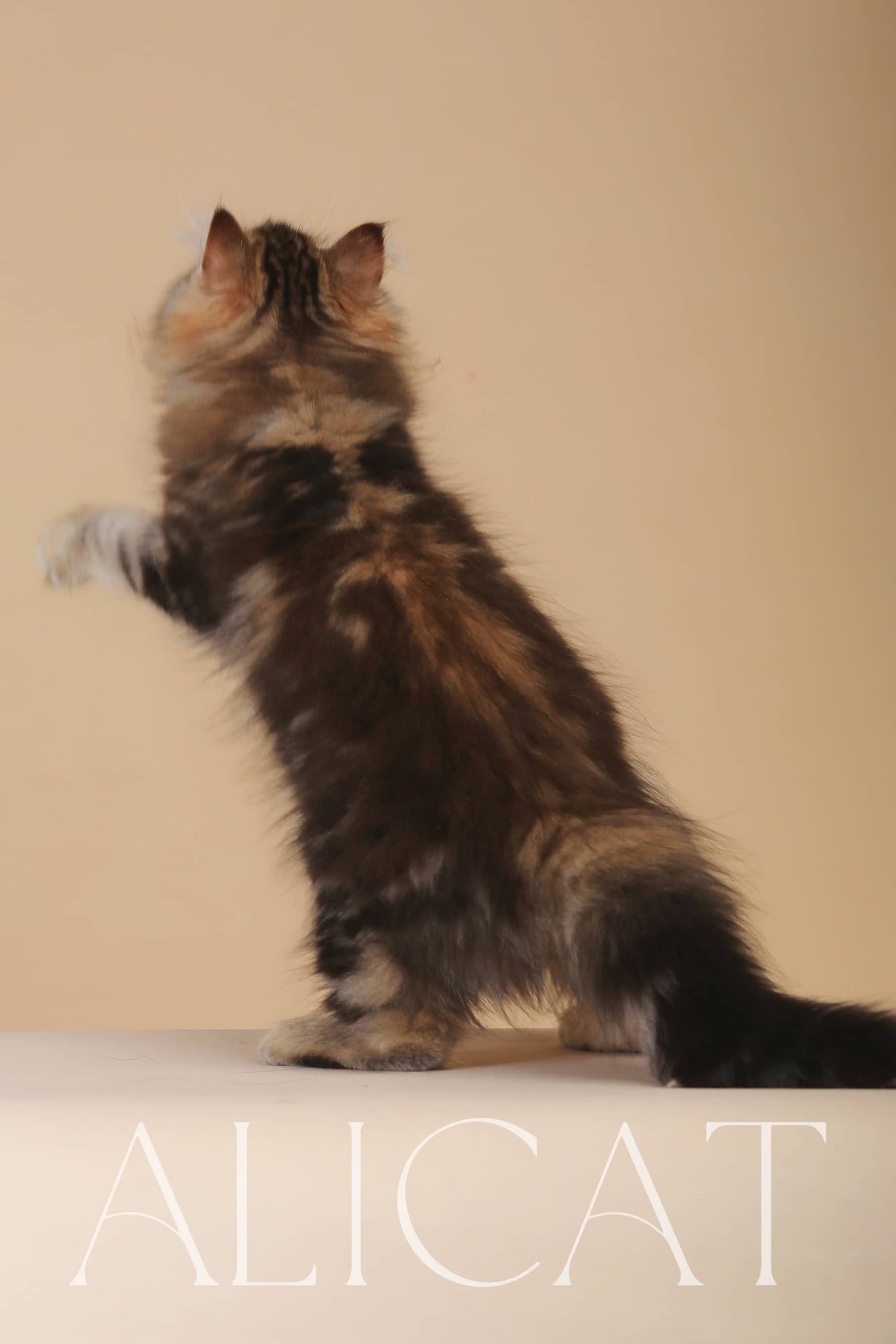 正面结构尤为出色:头骨轮廓饱满流畅,耳位分布匀称,眼距与鼻口比例协调,五官排布舒展大气,完全符合品种标准;从五官到体态,没有任何扣分或失格的地方,是一只近乎完美的繁育级小猫。